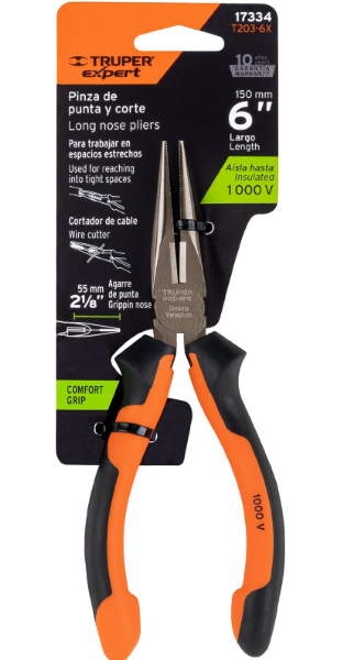 Pinza punta y corte 6″ mango Comfort Grip, Expert -17334- Truper